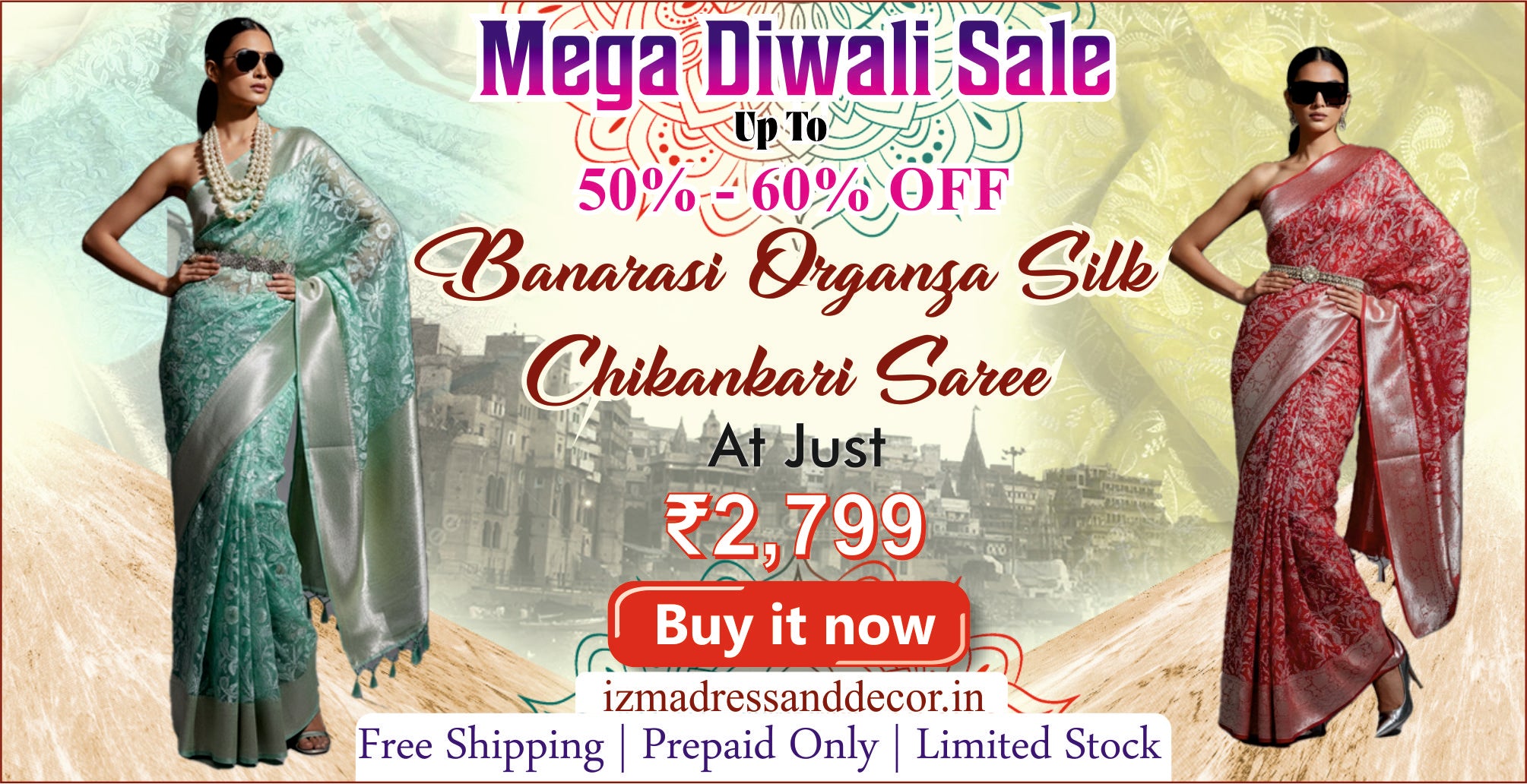 banarasi organza chikankari saree with zari pallu and rich texture border