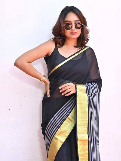 Banarasi Semi Katan Silk saree with zari pallu and rich texture border